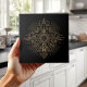This striking ceramic tile features an intricate geometric pattern inspired by the lavish elegance of the Art Deco era. The design combines precise symmetry and bold linear elements in metallic gold tones centered on a sleek black background, creating a look of refined luxury. Perfect as a statement accent or part of a larger decorative wall arrangement, this tile brings sophistication and timeless glamour to modern interiors. Search ID1196 to see all of the designs available in this Art Deco set. Note: design contains generative content.