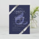 Luxury Artsy Navy Blue Silver Brushstrokes Wedding Invitation
