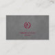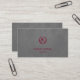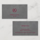 Barber shop name tag with red burgundy scissors logo and barber script on a grey leather texture background
