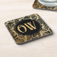 Elevate your home decor with this Luxury Black and Gold Monogram Beverage Coaster. Featuring an exquisite black background adorned with intricate gold leaf patterns, this coaster showcases a sophisticated monogram with the initials "OW" in the centre. The opulent design adds a touch of elegance and refinement to any space, making it perfect for both special occasions and everyday use.