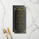 Add a touch of sophistication and drama to your wedding reception with this luxury black and gold wedding menu card. Featuring a deep black background with gold foil-inspired text and elegant floral line accents, this menu design sets the tone for a glamourous, formal celebration.