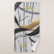 Elevate your bathroom with this sophisticated three-piece towel set featuring a bold black-and-gold abstract line design. Flowing metallic-inspired curves layered over fine linear detailing create a striking modern pattern that feels both artistic and luxurious. The coordinated set includes a bath towel, hand towel, and wash cloth, making it perfect for adding a refined, contemporary touch to everyday routines or for gifting to lovers of modern home décor and spa-style elegance.