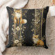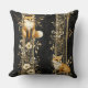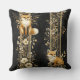 A refined black-and-gold botanical pattern throw pillow featuring elegant foxes framed by ornate florals and vintage gilded accents. This luxurious nature-inspired artwork suits lovers of Victorian style, Arts & Crafts motifs, and rich decorative patterns. Ideal as a gift for wildlife enthusiasts, art lovers, and anyone who appreciates elegant woodland themes—perfect for birthdays, holidays, décor lovers, and stylish seasonal occasions.