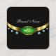 Luxury Black Gold Green Marble Rhinestone Monogram Square Business Card