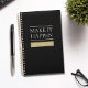 Featuring the phrase “Make it Happen” with a customizable name and year, this elegant minimalist design inspires focus and productivity.