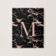 Luxury Black Marble Rose Gold Foil Monogram Jigsaw Puzzle
