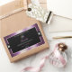 The design features a noble shimmering purple frame with fine decor lines, on a plain black background.