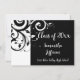 Classy and elegant black and white swirl graduation announcement, graduation party invitation or graduation invitation. Perfect for the girl with a refined sense of style. Leafy scroll design with black background and white fancy script lettering. Customize online!