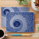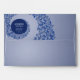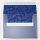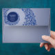 This design features a deep blue background adorned with intricate silver damask patterns that shimmer with elegance. The ornate floral swirls create a sophisticated circular frame in the centre, where the customisable name and address appear. The striking contrast of cool blue and metallic silver gives this envelope a refined, royal touch—perfect for weddings, anniversaries, formal invitations, or milestone celebrations. All text areas are editable for full personalisation.
