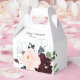 This luxury boho colourful floral wedding favour box is perfect for a rustic wedding. The design features elegant watercolor blue, burgundy, pink and blush flowers with green foliage.