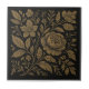 A refined botanical tile design featuring intricate golden floral and leaf motifs on a deep matte black background. This elegant square tile combines the timeless beauty of vintage engravings with a luxurious contemporary aesthetic, perfect for accent walls, bathrooms, kitchens, or high-end interior design projects.