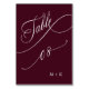 Luxury Calligraphy Burgundy Wedding Number 8, Table Number