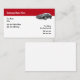Automotive service business cards with image of a luxury vehicle a classic red and white backgroun, and inability to customise the text fields online to suit your business needs. Designed foreign auto repair, auto body and collision shop, automobile repair services.