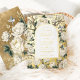 This lovely chinoiserie-inspired design features exquisite white peony flowers and birds set against a luxurious gold foil background, exuding elegance and sophistication. The modern calligraphy and sans serif fonts used in the text are also in gold foil, adding a touch of glamour to the overall design.