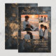 The Sophisticated Wedding Charcoal Black Gold Effect Abstract Texture 4 Photo Collage Save the Date Card is the ideal choice for announcing your wedding with a vanguard style full of its own personality, away from the conventional. The design facilitates the integration of engagement images into a modern grid format that stands out against the textured grunge background, being a perfect option for an industrial style wedding or a celebration in a repurposed urban space. By using this wedding announcement, an impactful first impression is guaranteed, where the elegant typography and finishes that simulate the glow of gold enhance the importance of the event. This product adapts perfectly to evening celebrations or events with an alternative luxury theme. The arrangement of the photos and text ensures all relevant information is clear, making this wedding card an unforgettable keepsake for all guests.