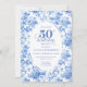 Luxury Deep Blue Toile Roses 50th Birthday Invite