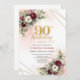 Luxury Deep Red Floral Gold 90th Birthday Invite