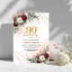 Celebrate an unforgettable milestone with this 90th birthday invitation, beautifully designed in a boho and bohemian style featuring soft watercolor blush and burgundy florals accented by an elegant gold frame. This refined design combines warmth, sophistication, and timeless charm—perfect for honoring a very special occasion.