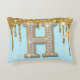 Luxury Diamond Letter H on Gold Glitter Background Decorative Cushion