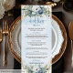 Luxury Dusty Blue Gold Greenery Floral Wedding Menu