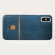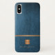 Classy exclusive looking office or personal monogrammed phone case featuring a faux copper metallic gold glitter square with your monogram name initials and a sparkling stripe over a stylish classic blue faux leather background. ++++++++++++++ Suitable for small business, corporate or independent business professionals, personal branding or stylists specialists, makeup artists or beauty salons, boutique or store managers. +++++++++++++++ Please note that the leather texture and glitter sparkle effects are PRINTED.