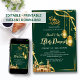 Gather your community, friends, and family for a blessed meal with this luxurious Iftar invitation. Featuring a rich emerald green background adorned with a majestic 3D mosque illustration, elegant golden lanterns, and delicate gold foliage accents. The sophisticated gold frame provides a premium look for your Ramadan dinner, Eid celebration, or any Islamic gala. Easily personalize the text to include your event details and RSVP information.