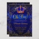 Our Luxury Floral Gold Royal Blue Baby Shower Invitation impresses with a timeless royal blue backround, enchanting golden flowers with a blue vintage crown on which your details in golden letters come into their own. Your custom details can be changed in the details menu.