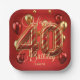 Luxury Glam Red and Gold 40th Birthday Celebration Paper Plate