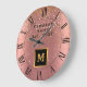 Luxury Glitter Gold Pink Stars Monogrammed Large Clock