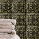 Elegant ceramic tile design featuring an elegant faux gold baroque border on a black background.