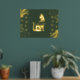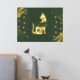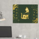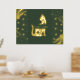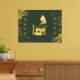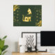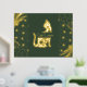 Get your real gold foil print 18x24 inch with a space cat silhouette in complete gold shiny tones surrounding with hearts, minimal shapes and with a dark green background . It has a luxury style with the real gold foil and is nice for coastal homes. Customise it with a short quote or your cat´s name and choose different sizes.