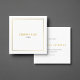 A refined white square business card features a delicate double line gold effect border framing balanced, modern typography for the company name, city, and concise contact details. The airy layout and centred text feel elegant yet minimal, ideal for small businesses wanting a clean, professional presence that suits logos or initials. All fonts, sizes, and background colours are fully customisable. The gold colour is printed.