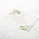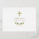 Luxury card design featuring watercolour delicate white flowers corners, GOLD FOIL frame, confetti, all wording, cross, on a white background. On the back white flowers bouquet and cross. Use Personalise tool to add your info. For matching items, please, visit my Gold Foil Baptism Collection.