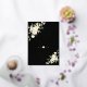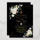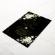 Luxury card design featuring watercolour delicate white flowers corners, GOLD FOIL frame, confetti, all wording, cross, floral divider, on a black background for a great look. On the back white flowers bouquet and cross. Use Personalise tool to add your info, change fonts, font's colours. For matching items, please, visit my Gold Foil Baptism Collection.