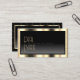 Make a lasting impression with this elegant and luxurious business card design featuring a shimmery golden frame and fine gold decor stripes with a modern black gradient background.