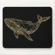 Upgrade your workspace with this sleek and sophisticated geometric whale mouse pad. The design features a majestic humpback whale illustrated in an intricate polygon wireframe style, rendered in a chic faux gold texture.