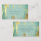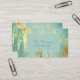 Here's a distinctive, elegant, and professional card that works well for many different businesses. The front has your custom text in two fields on a solid semi transparent rectangle that is framed with double thin gold lines. The rectangle is placed on a stunning background of gold faux paint layered over an aqua blue background that appears infused with light. The back of the card has the same background and framed background with more text fields. Beautiful!