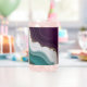 Soft flowing waves of teal and deep purple blend together with shimmering gold sparkles. A stylish abstract pattern with a modern and luxurious feel.