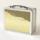 This is a standard metal lunchbox that appears to work just fine. We designed this box ourselves with an uploaded photo and custom text on the front and back. It looks absolutely beautiful except the front of the lunchbox is not centered like it shows in the photo. The print borders don't align with the inset flat part of the box where the preview photo online showed it perfectly centered in there. The back looks nice and centered though.