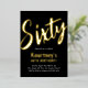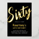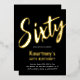 Add style and luxury to your birthday celebrations with these elegant real gold foil Birthday Invitations. Design features the calligraphy script 'Sixty' in gold on a classic black background with a modern custom template that can easily be personalised with your own event details. Name and age is also in gold foil.