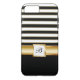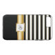 Custom monogram smartphone case with luxury gold styled design elements printed on the cover and lets you carry your cell phone in style that includes a white and gold stripes pattern.
