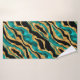 Luxury Gold Teal Tiger Stripe & Tropical Leaves Bath Towel Set