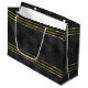 Black monochromatic luxury background with gold stripes accent. Cool modern glam design.