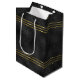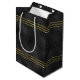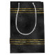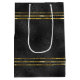 Black monochromatic luxury background with gold stripes accent. Cool modern glam design.