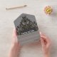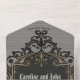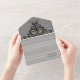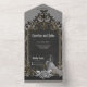 Luxury meets romance. An artfully designed black, silver gold frame adorned with delicate, filigree decorations. These loving details give the design an opulent touch and envelop the viewer with a feeling of festive anticipation. Within this magical frame, a woman reveals herself in a stunning wedding dress. The design exudes an aura of exclusivity and warmth