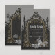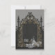Luxury meets romance. An artfully designed black, silver gold frame adorned with delicate, filigree decorations. These loving details give the design an opulent touch and envelop the viewer with a feeling of festive anticipation. Within this magical frame, a woman reveals herself in a stunning wedding dress. The design exudes an aura of exclusivity and warmth