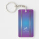 An elegant luxurious style abstract keychain featuring violet and blue geometric design. Personalise with your monogram and name.