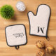 Introducing our personalised oven mitt and pot holder set, where elegance meets functionality. The oven mitt features your monogram in an elegant serif font, while the pot holder combines your name in modern handwritten brush script with your last name in an elegant serif. Designed in a minimalist and luxury style, this set adds a sophisticated personal touch to your kitchen.