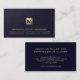 Make a lasting impression with our Luxury Monogram Business Card. The front showcases a brushed gold monogram initial, highlighting your company name, address, and contact details in golden classic typography, elegantly placed on a rich blue leather print background. This design exudes professionalism and sophistication, perfect for estate planners, attorneys, and advisors. The back of the card features your name, title, and personal contact information on a solid navy blue backdrop, ensuring your details are easily accessible. Elevate your networking and brand image with this premium business card, a must-have for making connections in the legal and advisory fields.