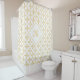 A luxury white and gold four point quatre floral pattern shower curtain that can be personalised by adding your monogram. This elegant vintage monogrammed damask design is sure to bring out your sophisticated side. Flat printed image, not metallic.